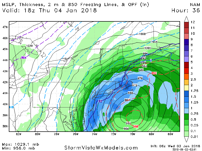 January 20, 2025Jan 20 Look at these NAM maps for Jan 4th 2018 only 36 hours out. People would have a meltdown (myself included) if we saw this now: