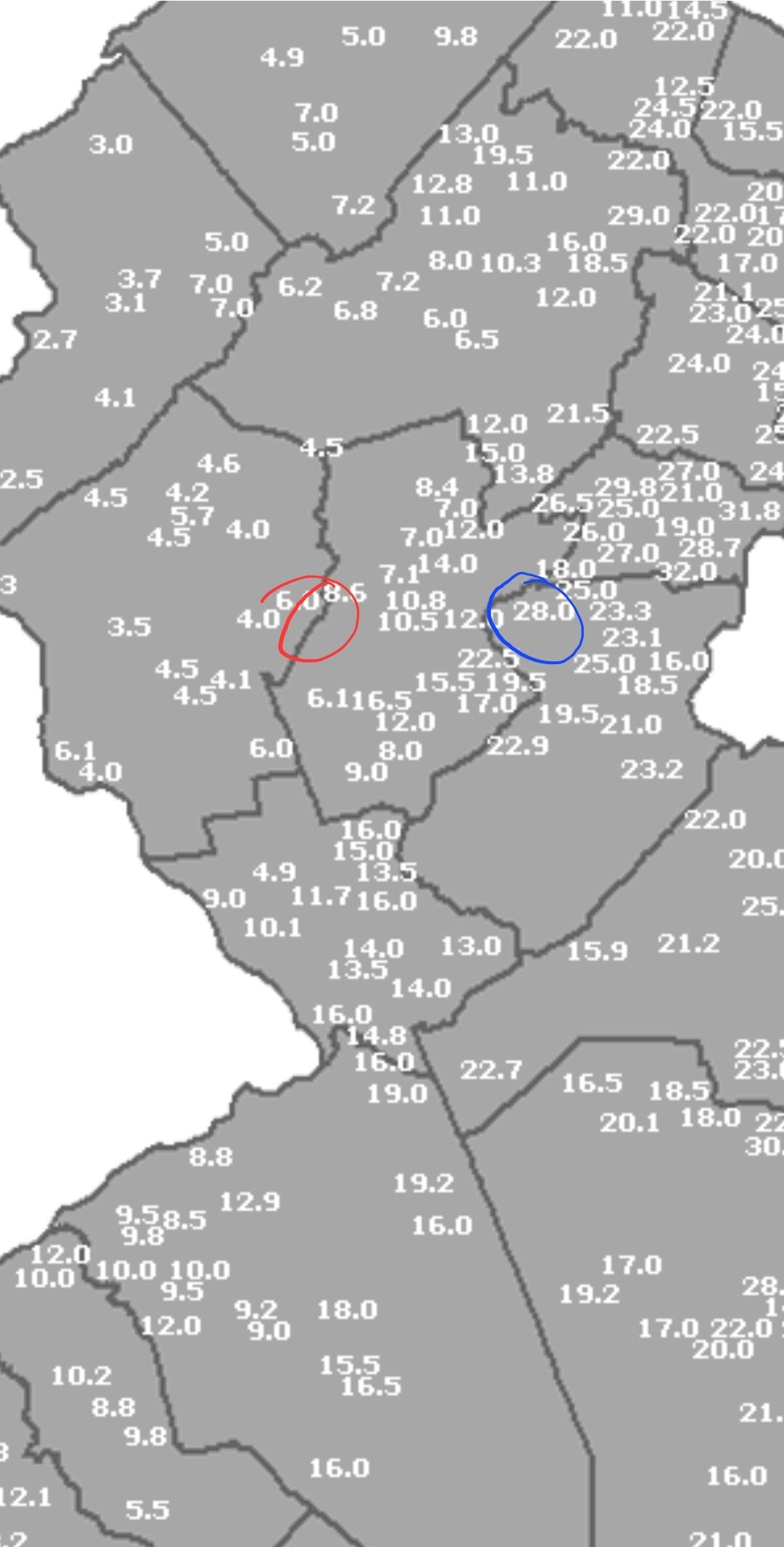 January 27, 2025Jan 27 3 minutes ago, Sundog said: Hey @FrankPizz did you get shafted bad in Boxing Day? I'm looking at some snowfall maps and western NJ got totally screwed in that storm, you go from 5 inches to 25 inches just doing the short drive west-east across Somerset County. Thankfully I hadn't moved yet. I was in Middlesex Co and got 25" or so. If I lived here, which is like 11 miles as the crow flies west, I would have gotten like 5". I often look at that on Ray's site. That would have been a rough one to miss.