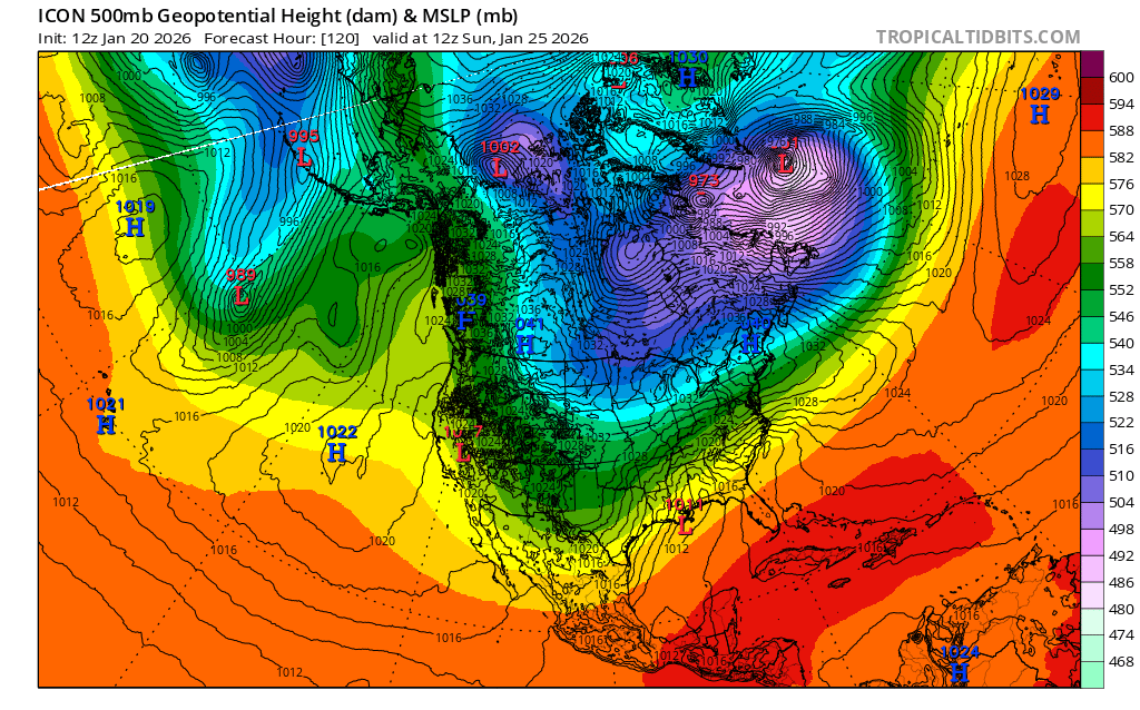 January 20Jan 20 Author Scaling out the ICON here, it's through the roof at 120 hours1) NAO - GREAT block before the storm 92) PNA 3 There is good amplification albeit more off shore than I want3) EPO 9 It is pretty much ideal4) Cold Source 8 brrrrr5) 50/50 16 it is perfect 6) Wild Card 1 points - Jan 25 is a special date92 percent chance of 6 inches or more NYC