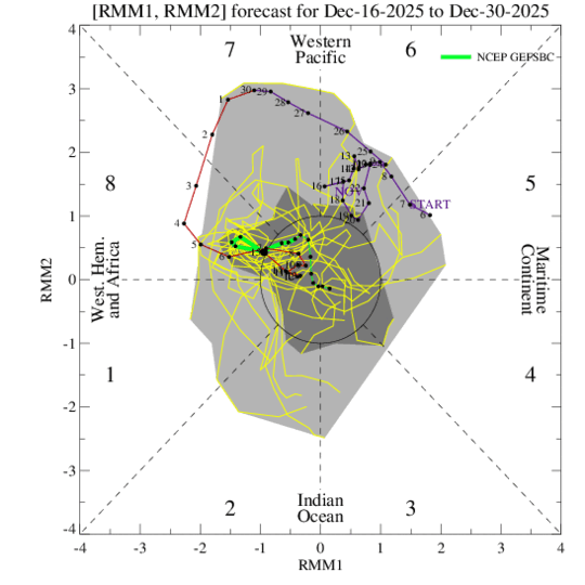 December 16, 2025Dec 16 I don't trust these plots at all.They look so different from day to day. They're based on convection in the equatorial Pacific.We know from thunderstorm season how bad models can be with thunderstorms even on day one or two.How can we rely on this to be correct on day 10-14?