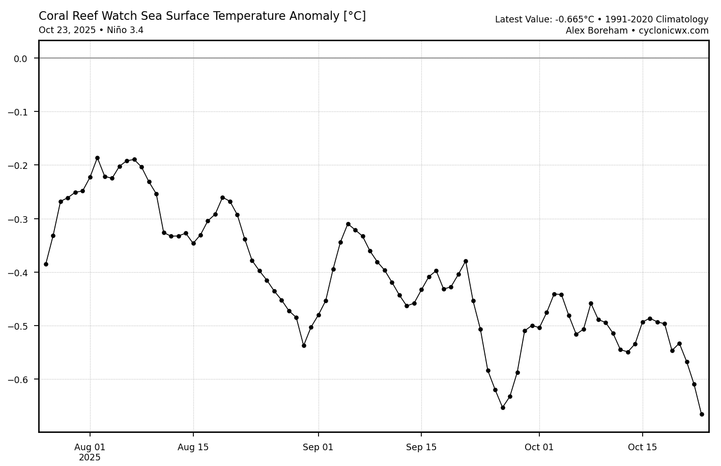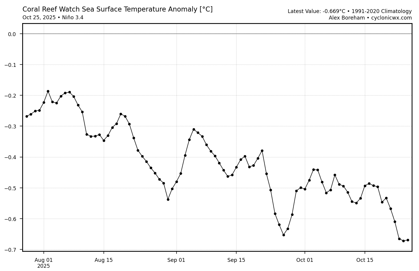 October 25, 2025Oct 25 coldest sst so far...la nina is here...lets hope it maintains itself thru the winter...its forecast to be neutral by January which would make this event neutral overall...no -0.5 oni for DJF please...