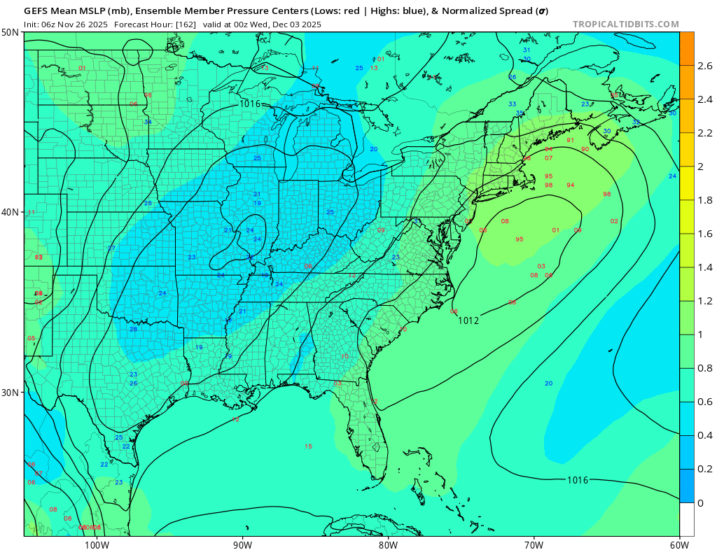 November 26, 2025Nov 26 Interesting trend on the EURO. Looks like 6z would have been a more amped up solution.