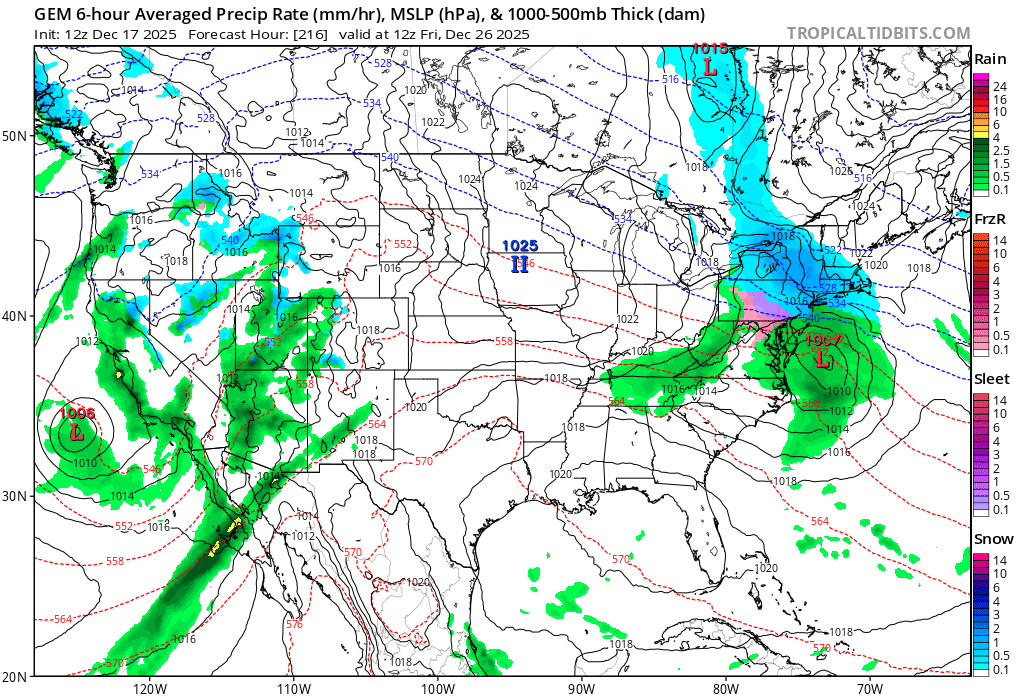 December 17, 2025Dec 17 Light snow Xmas eve morning for NYC.Xmas wave is still there on the GFS but it is a little south for most this run.