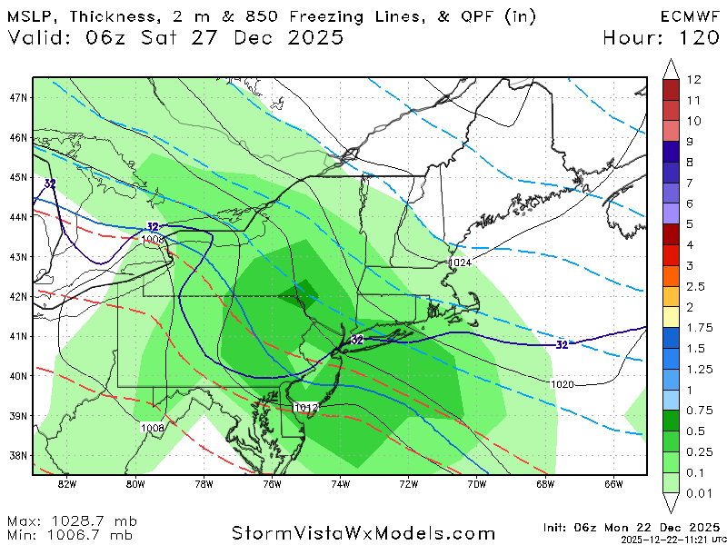 December 22, 2025Dec 22 NWS OKX discussion (just for reference): 'With the warm front north of the region Friday temperatures will beas much as 8 degrees above seasonal normals, however, no records arelikely, with records mainly in the lower to mid 60s.High pressure to the north will push the front back south Fridaynight, with the front then possibly stalling in the vicinity. Aseries of frontal waves then move along the boundary with chancesof mainly light rain into the upcoming weekend.'
