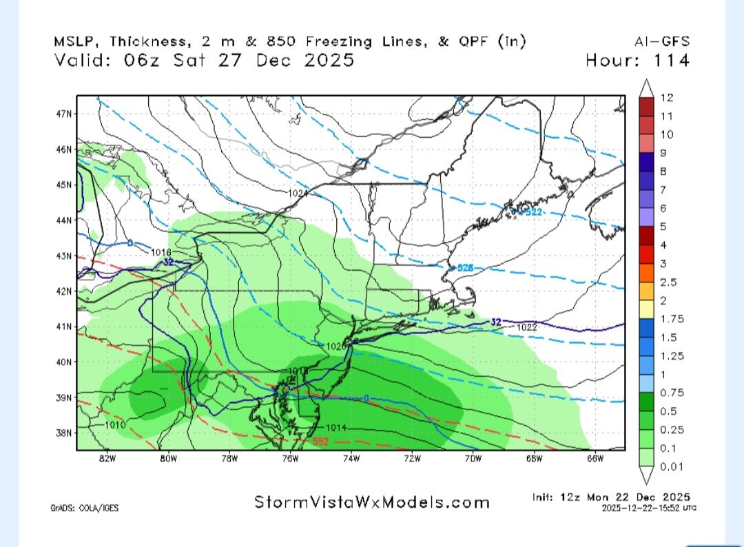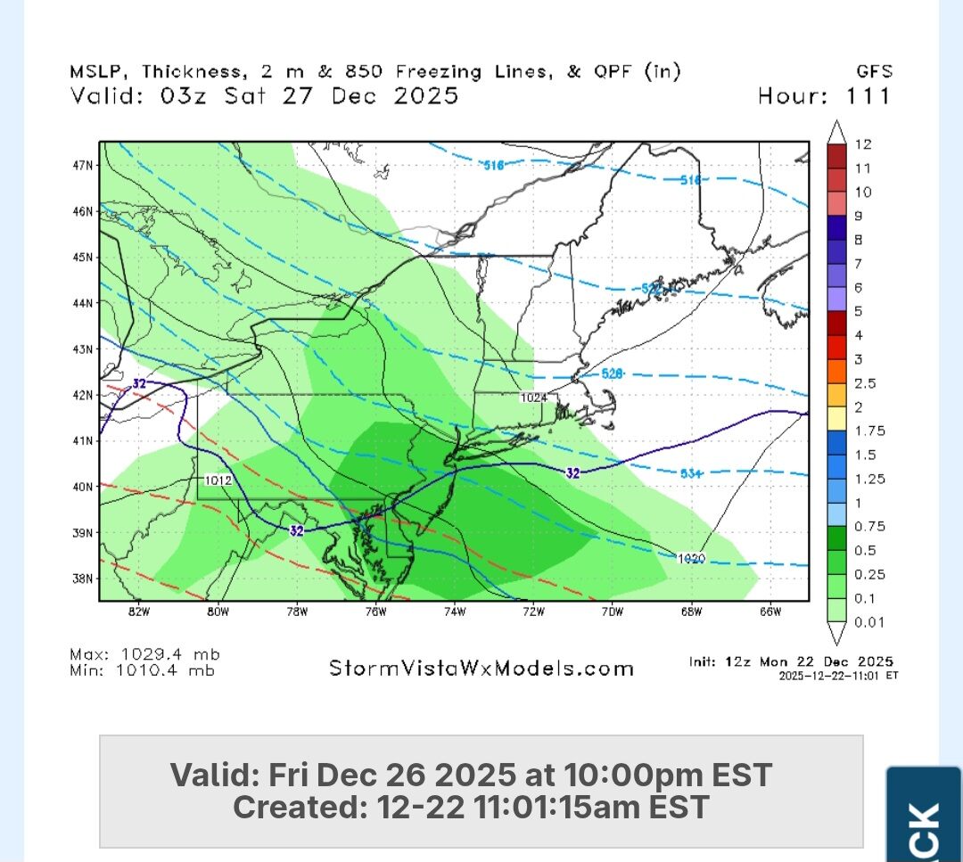 December 22, 2025Dec 22 Author 1 minute ago, SnowMiser123 said:Should be nice for NYC & south this run.These bump last 36 hrsSo need wiggle room