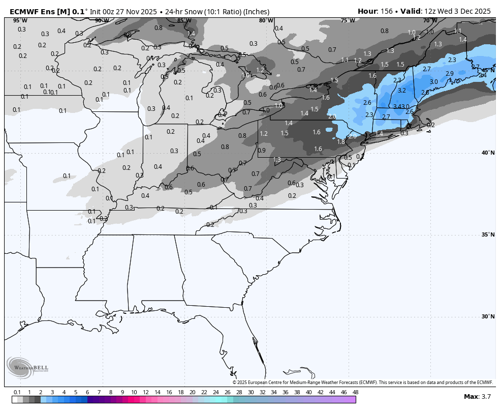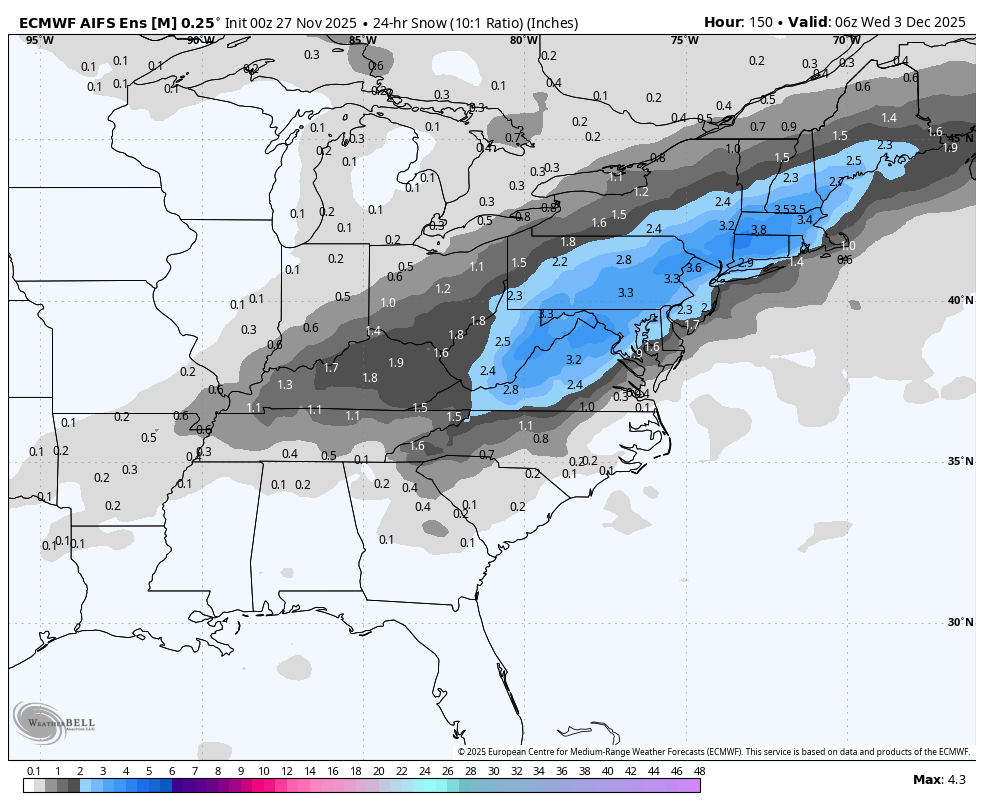 November 27, 2025Nov 27 15 minutes ago, THE GREAT Ben Solo said: AI ENS Nice for first accumulating snowfall of the season