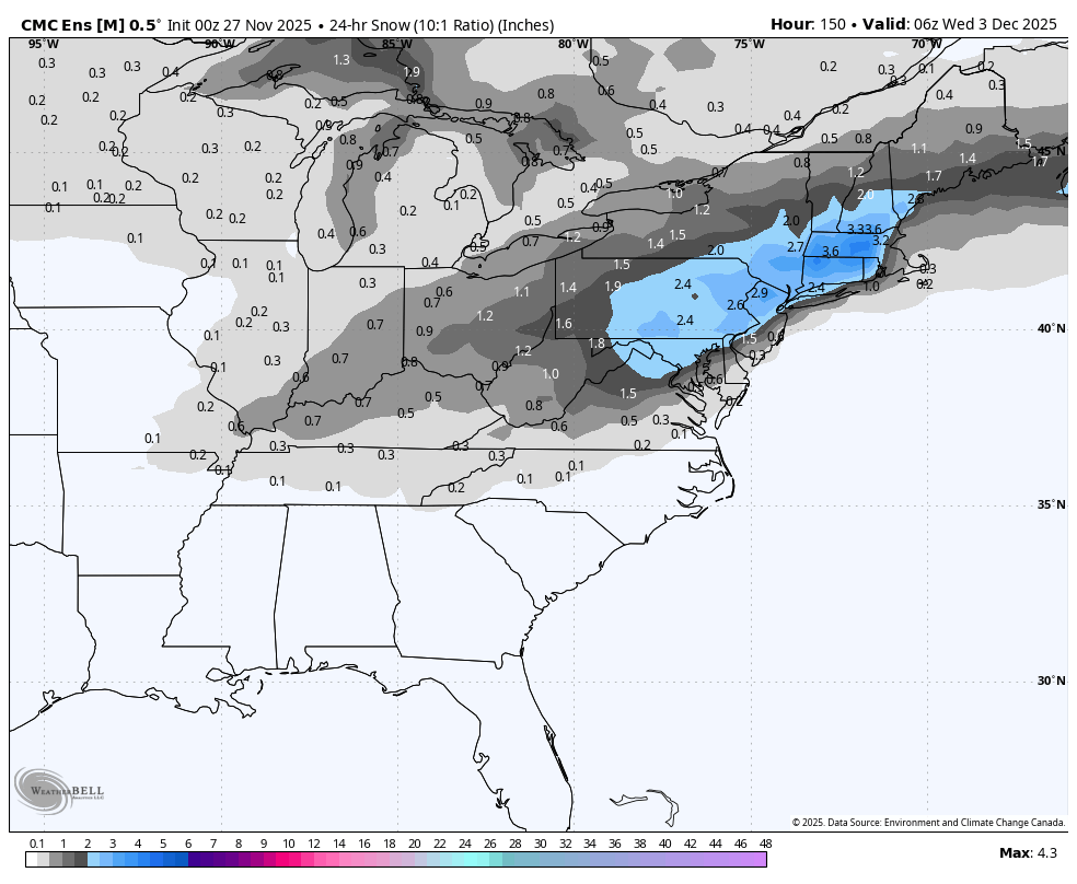 November 27, 2025Nov 27 7 minutes ago, Metfan88 said: Gfs , icon and cmc are pretty similiar. Heavy snow interior. Night And ukie
