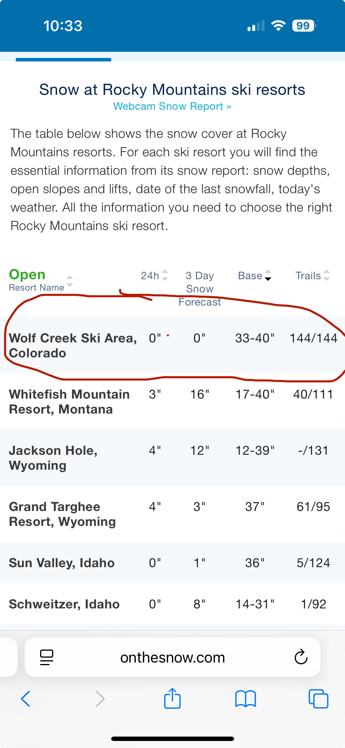 December 9, 2025Dec 9 7 minutes ago, Analog1888 said:The rockies have no snow... meanwhile the lead story on the news channel here was a 57 car pile up on i 70 in Colorado due to snow. That must have been a lie, too.Look at ski area stats. Horrific.