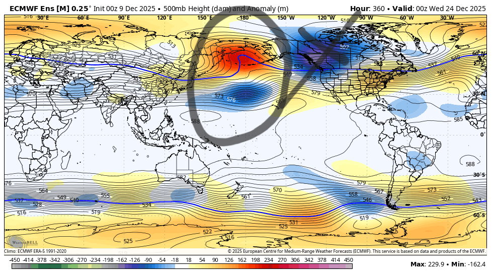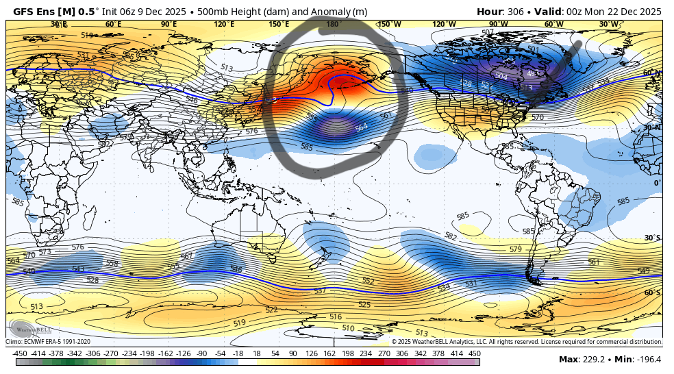 December 9, 2025Dec 9 Author This is why I am not buying the warmup in the east outside of a cutter.That WPO should kick the trough east on the EPS just like on the GEFS That 500 makes sense