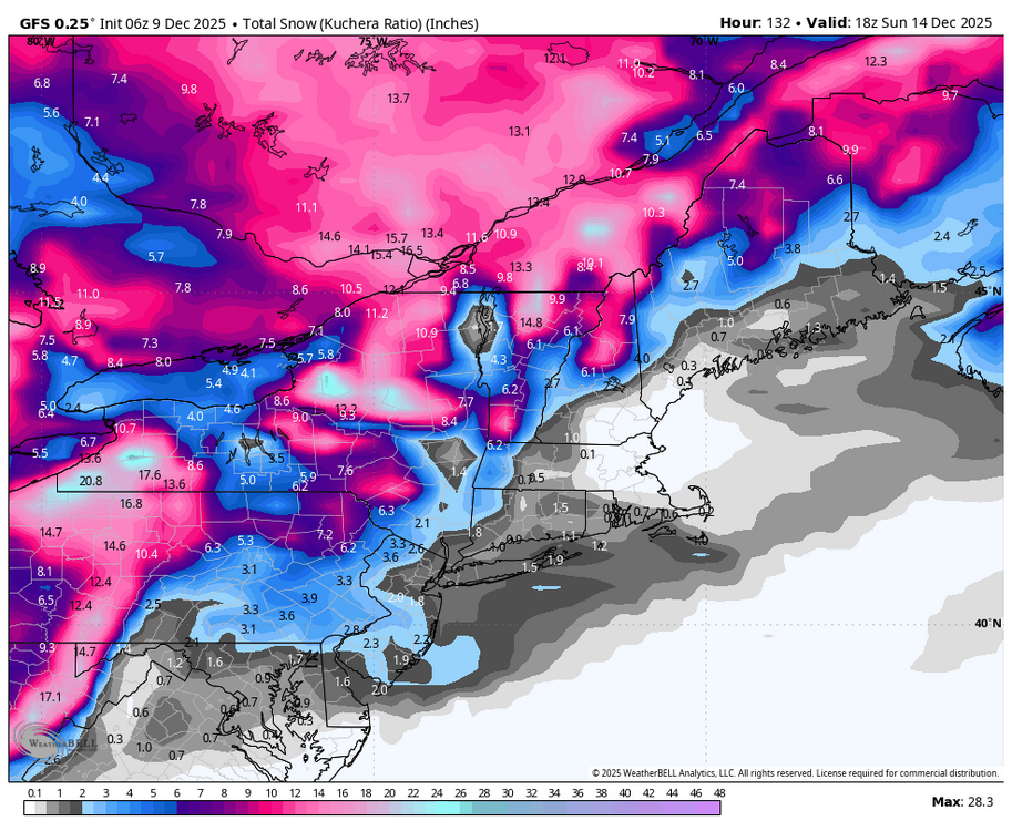 December 9, 2025Dec 9 @SnowMiser123 Im guessing you like the potential for a nice event this weekend. Still a bit far away but most guidance shows atleast a small clipper