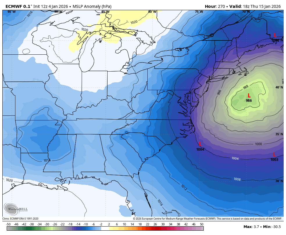January 5Jan 5 Author Look at anomalies to better visualize what kind of low-level cold air is getting caught underneath the above normal heights - we saw this happen a lot in 2013-2014.