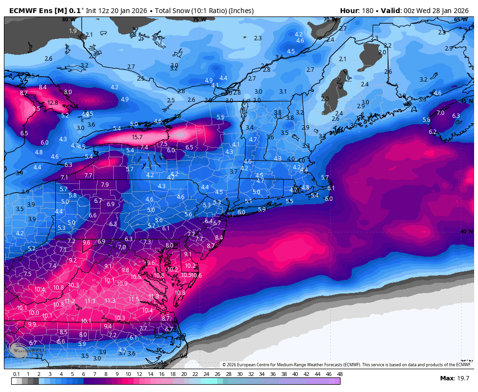 Tuesday at 06:21 PM2 days Author EPS have a pretty decent split on fast and less snowy members and slower and snowier memberswe will need to get better handling on the northern energy sampling to know if that secondary low and tertiary low pops5 days out, anything can and will happen