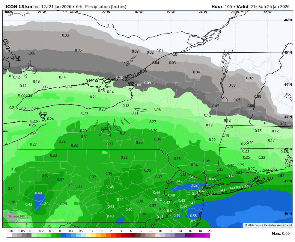 Wednesday at 03:55 PM1 day 4 minutes ago, nycsnow said:Thought the icon snow map didn’t match the precip map that well on icon, seemed kinda low nyc Long Island parts of jerseyDon't sweat precip maps at D4, overall evolution looks great. If we can get some bonus energy on the backside this goes from MECS to HECS, that's what I'm looking forMy flight to KC early Monday from LGA is looking rather tenuous