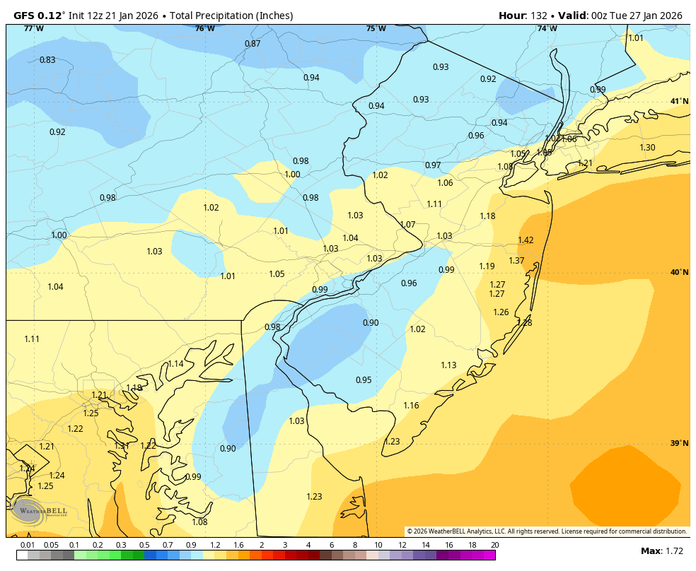 Wednesday at 04:10 PM1 day 4 minutes ago, jjvesnow said:Still playing catch up. Now gets the 1" isohyet to NYC & something close to .6-.7" to PIT.