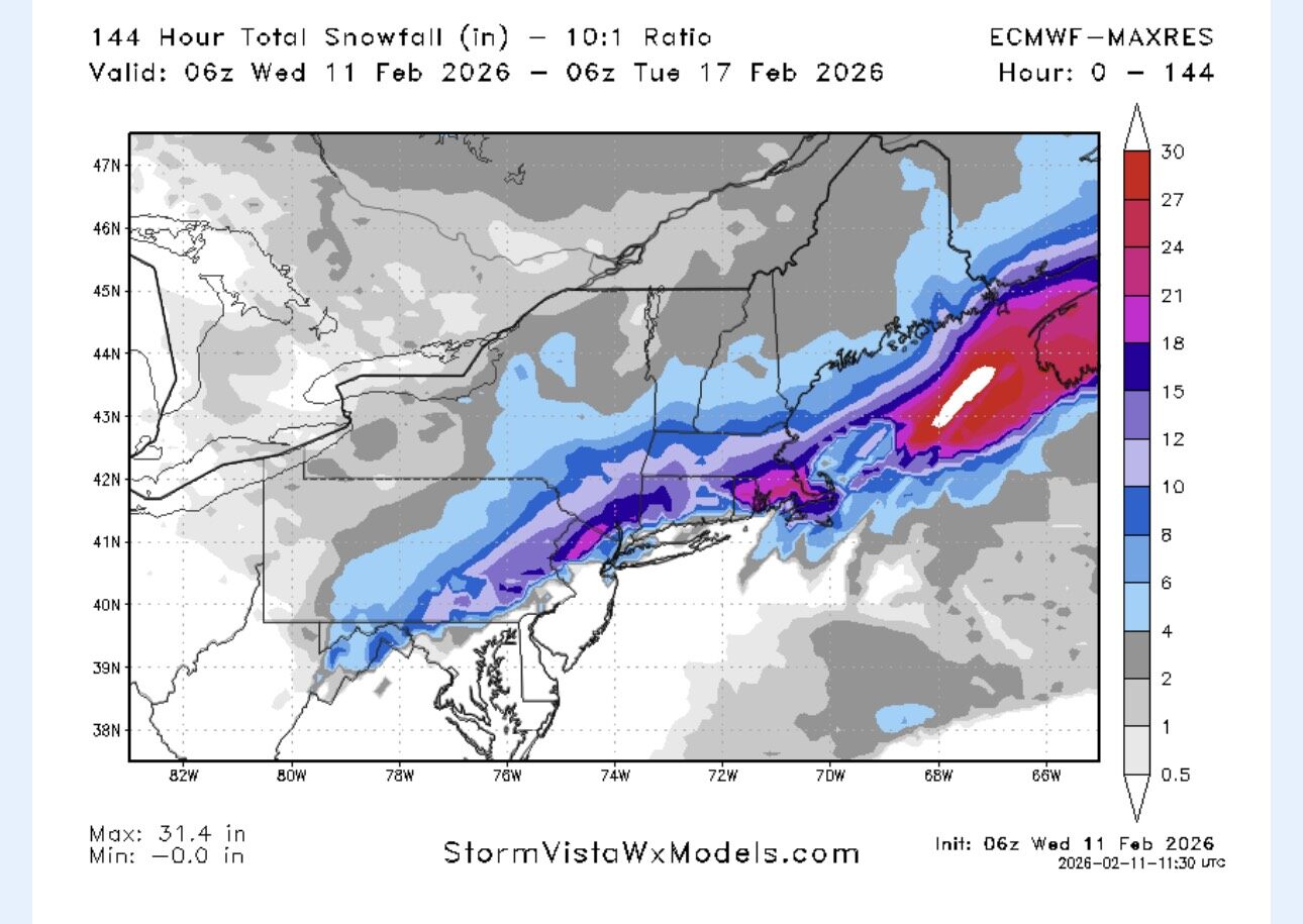 February 11Feb 11 1 hour ago, heavysnow said:Fantasy landIf four days is fantasy land, then there should be no more meteorologists.If the Euro is real, you'd see winter storm watches flying by tomorrow evening's forecast packages.