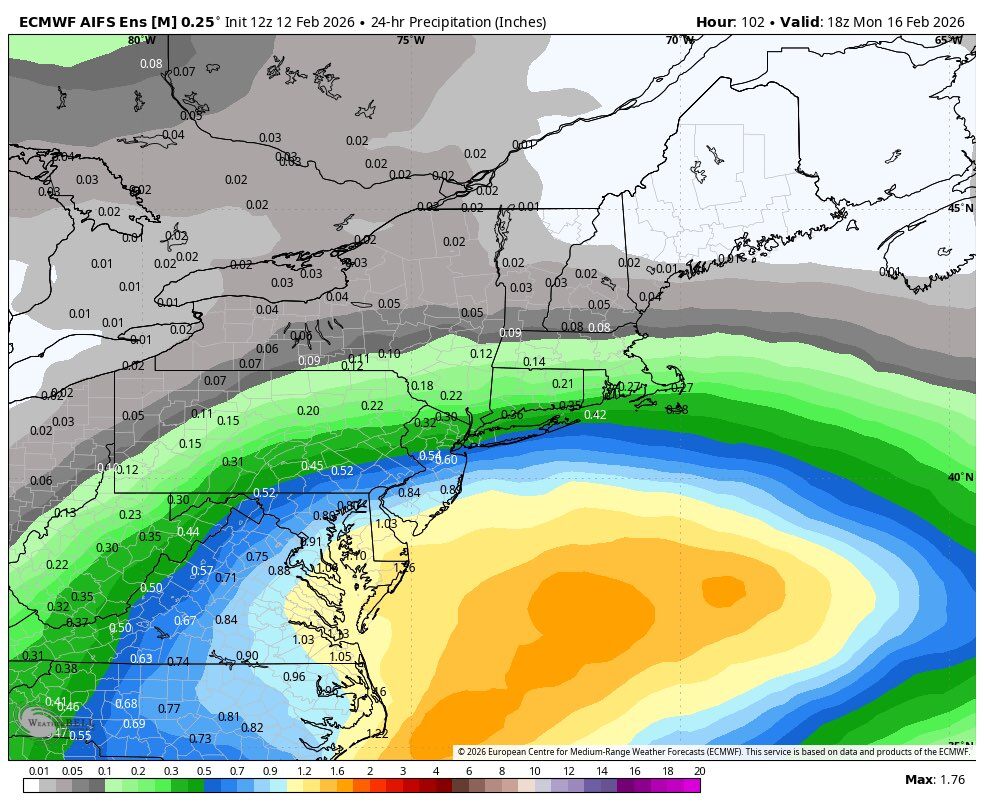 February 12Feb 12 We’ll see if the euro AI model is a genius if it snuffs this north trend out and verifies