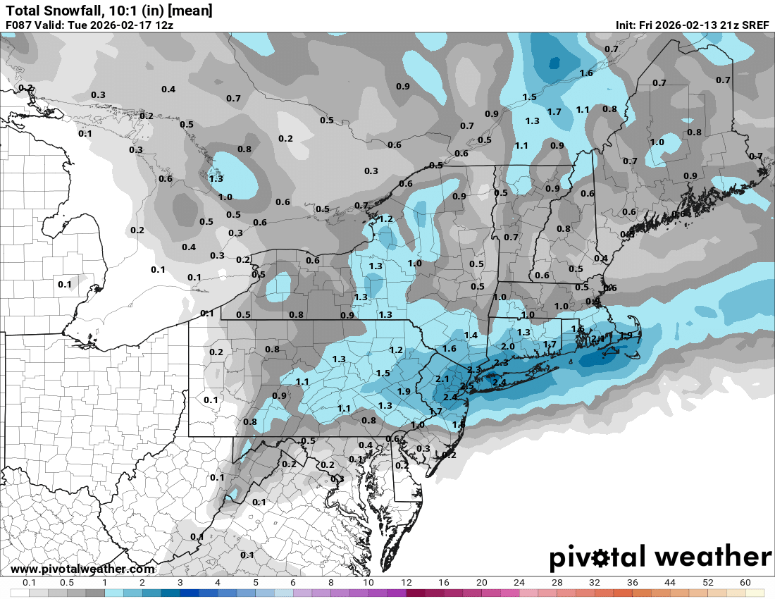 February 13Feb 13 My forecast would be for a light event for EPA/NJ right now. But a much less confident forecast than normal at this lead time.