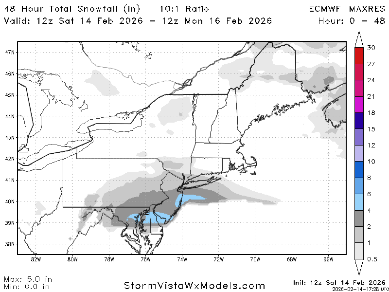 February 14Feb 14 7 minutes ago, Metfan88 said:Euro slightly south. 1-3 for nyc with more in CNJ.Tony posts a snow-map please- is this AI?