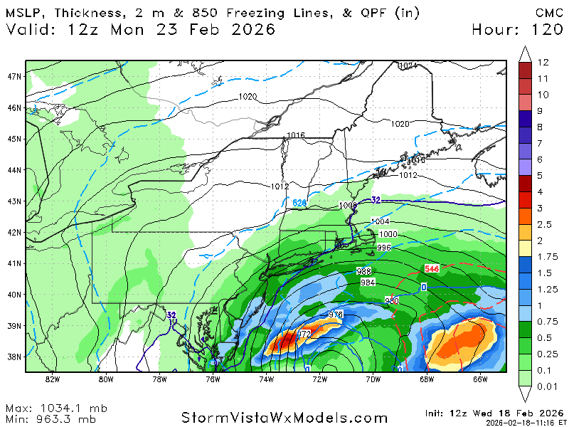 February 18Feb 18 10 minutes ago, gale warning said:963 low? That's blizzard-cane territory if that thing gets 100 miles closer to the coast963 is crazy. Thats borderline Cat 3 hurricane pressure.