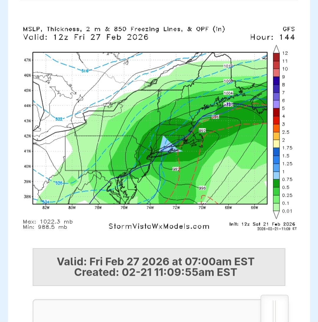 February 21Feb 21 1 minute ago, Keith O said:Don't look now but GFS has 2 more snow events on Wed and bigger one next Fri.