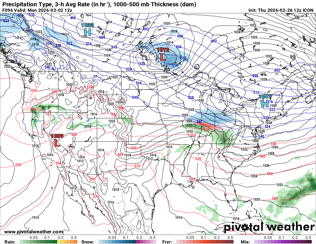 February 26Feb 26 As modeled, that cannot come north Monday.The GFS shows the high over Rochester, the GGEM is over VT (better, maybe enough for a light event), and the ECMWF is over NNJ.How is a low going to move directly into a high? Now, if the high moves into Canada, or at least far NNE, then we have a shot.But as modeled, that's not coming north.You can't just say "these like to come north"- you have to look at the pattern. Now, obviously many storms DO come north.So when I see a storm modeled to go south, I examine the synoptics.The first thing I do is check for a high pressure system or a PV lobe to block the storm.If there is none, I'll be the first to say that it's coming north.But for this one, the only way it could work, and it's possible, is if we get pure overrunning snow. But no true low pressure system is going right into a high. Unless, of course, the high is not modeled correctly.