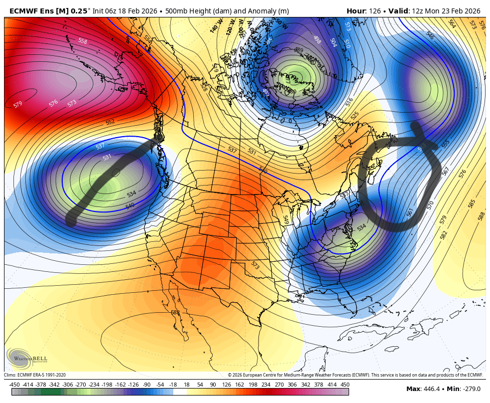 Yesterday at 12:23 PM1 day The further W the EP trough pulls back the further W the ridge goes which would pull the trough axis W with it.