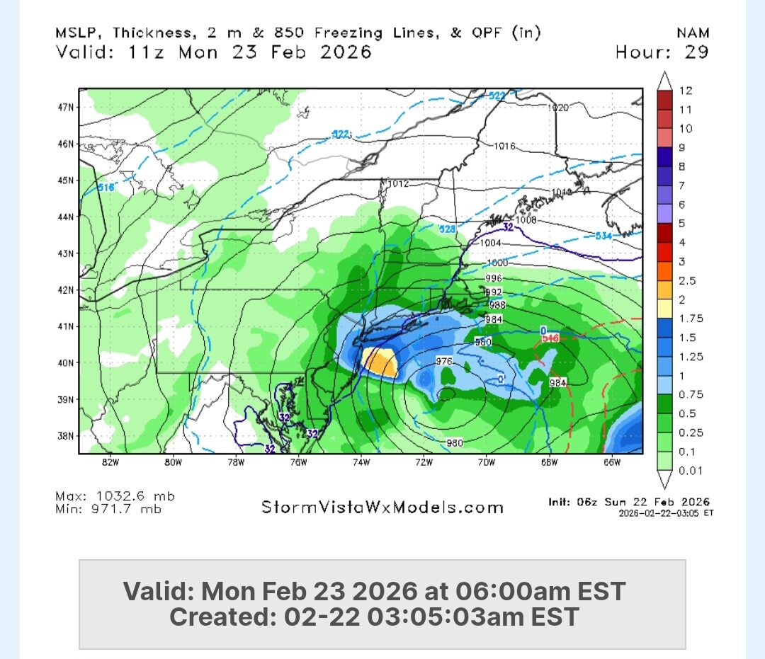 56 minutes ago56 min Per Upton/Holly11-15" North and West (Up to 45 MPH Gusts)14-18" North And East (Up to 50 MPH Gusts)16-20" South/Coastal (Up to 55 MPH Gusts)Sounds about right IMO
