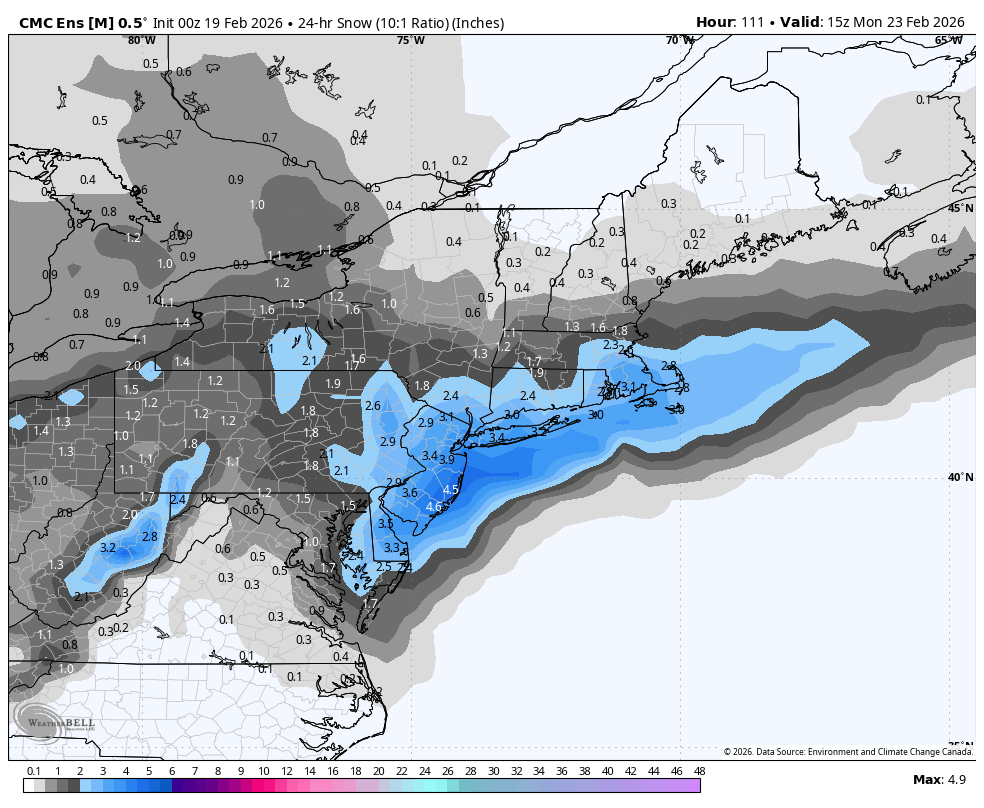 8 hours ago8 hr 3 minutes ago, nycsnow said:URGENT - WINTER WEATHER MESSAGE National Weather Service New York NY 112 PM EST Fri Feb 20 2026 CTZ005>012-NJZ002-004-006-103>108-NYZ067>075-176>179-210215- /O.NEW.KOKX.WS.A.0002.260222T1100Z-260223T2300Z/ Northern Fairfield-Northern New Haven-Northern Middlesex-Northern New London-Southern Fairfield-Southern New Haven-Southern Middlesex-Southern New London-Western Passaic-Eastern Passaic- Hudson-Western Bergen-Eastern Bergen-Western Essex-Eastern Essex- Western Union-Eastern Union-Orange-Putnam-Rockland-Northern Westchester-Southern Westchester-New York (Manhattan)-Bronx- Richmond (Staten Island)-Kings (Brooklyn)-Northern Queens- Northern Nassau-Southern Queens-Southern Nassau- 112 PM EST Fri Feb 20 2026 ...WINTER STORM WATCH IN EFFECT FROM SUNDAY MORNING THROUGH MONDAY AFTERNOON... * WHAT...Heavy snow possible. Total snow accumulations between 6 and 10 inches possible. Winds could gust as high as 40 mph. * WHERE...Portions of southern Connecticut, northeast New Jersey, and southeast New York. * WHEN...From Sunday morning through Monday afternoon. * IMPACTS...Travel could be very difficult. Areas of blowing snow could significantly reduce visibility. The hazardous conditions could impact the Monday morning and evening commutes. The combination of gusty winds and heavy wet snow could bring down tree branches. PRECAUTIONARY/PREPAREDNESS ACTIONS... Monitor the latest forecasts for updates on this situation.3 minutes ago, Graupel said:lol on Q with the euro they’re so euro centricPerfectly reasonable call at this time frame