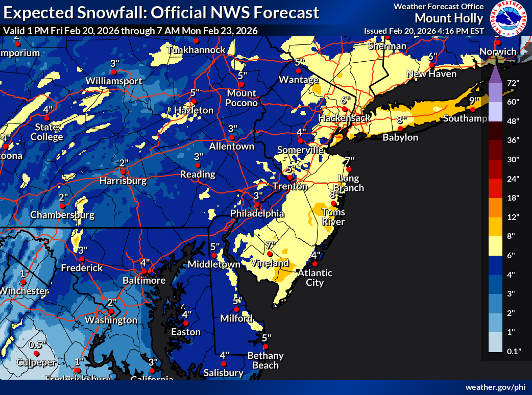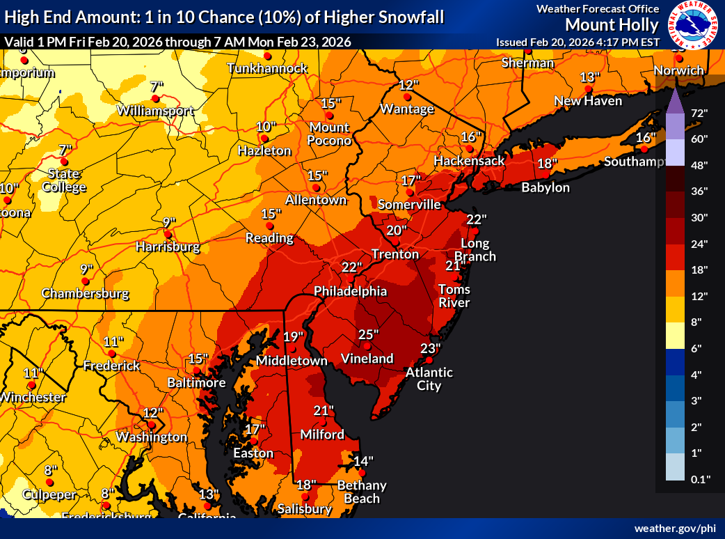 4 hours ago4 hr 3 minutes ago, NJCoast said:Mt Holly expected, and ridiculous high end for eye candy.Through 7 pm Monday: