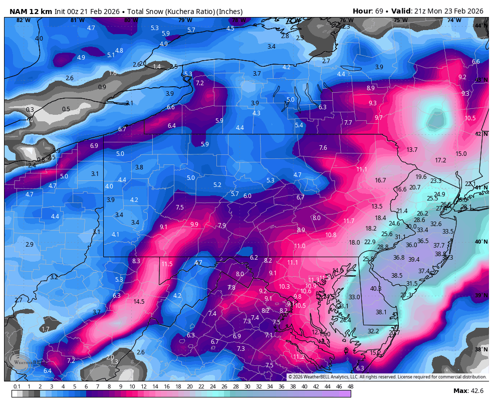 2 hours ago2 hr This is why we're here and watch model run after model run in winter and why many of us have been willing to do this for 26 years plus.Still about 36 hours to go to hold onto this dream scenario for many. Let's get this to the finish line and bask in winter's glorious white gift. Here is to hoping all here get to make snow angels in feet of snow!☃️