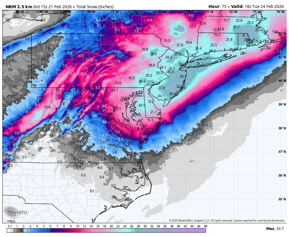 1 hour ago1 hr 1 minute ago, amugs said:Wow!Holy Crap .. has me in 24". See more like 12-18" here but damn. 20-30" for the Monmouth/Ocean/LI folks
